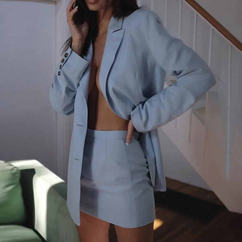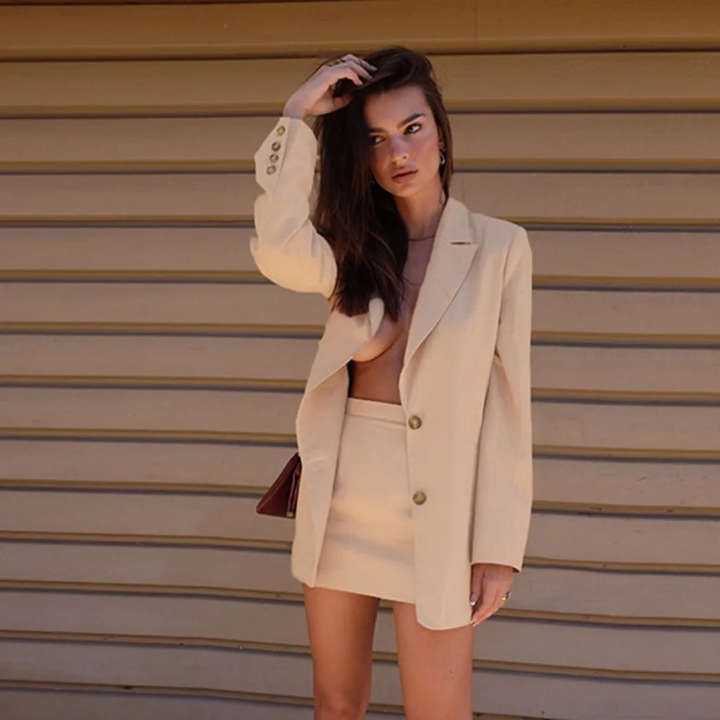 Female Retro Solid Blazer Set
