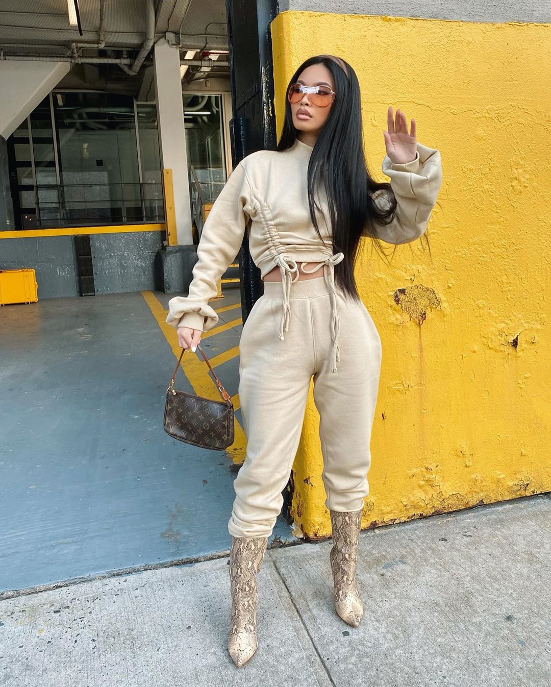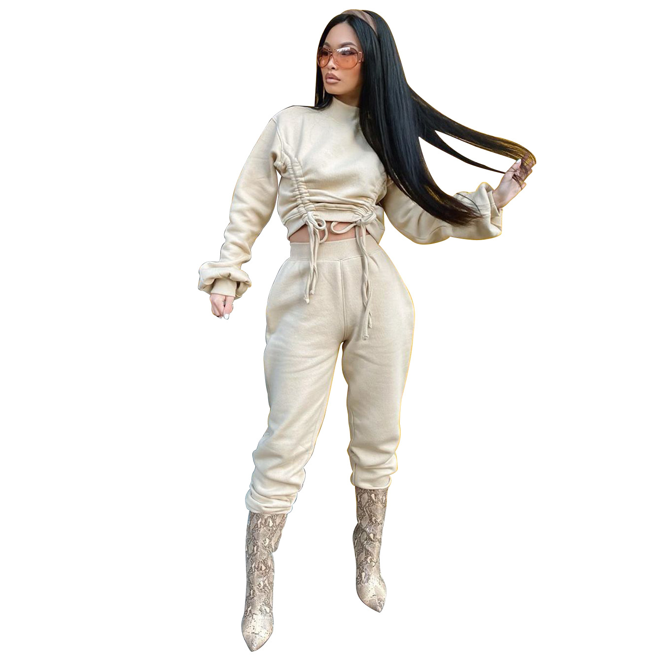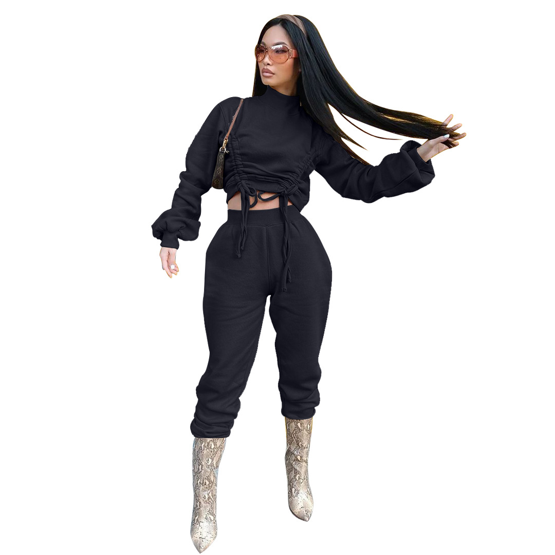 Drawstring Long Sleeved Sweater Two Piece Suit