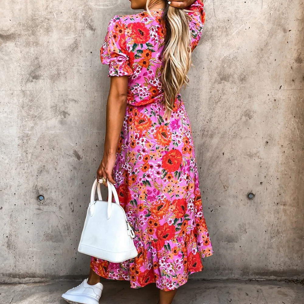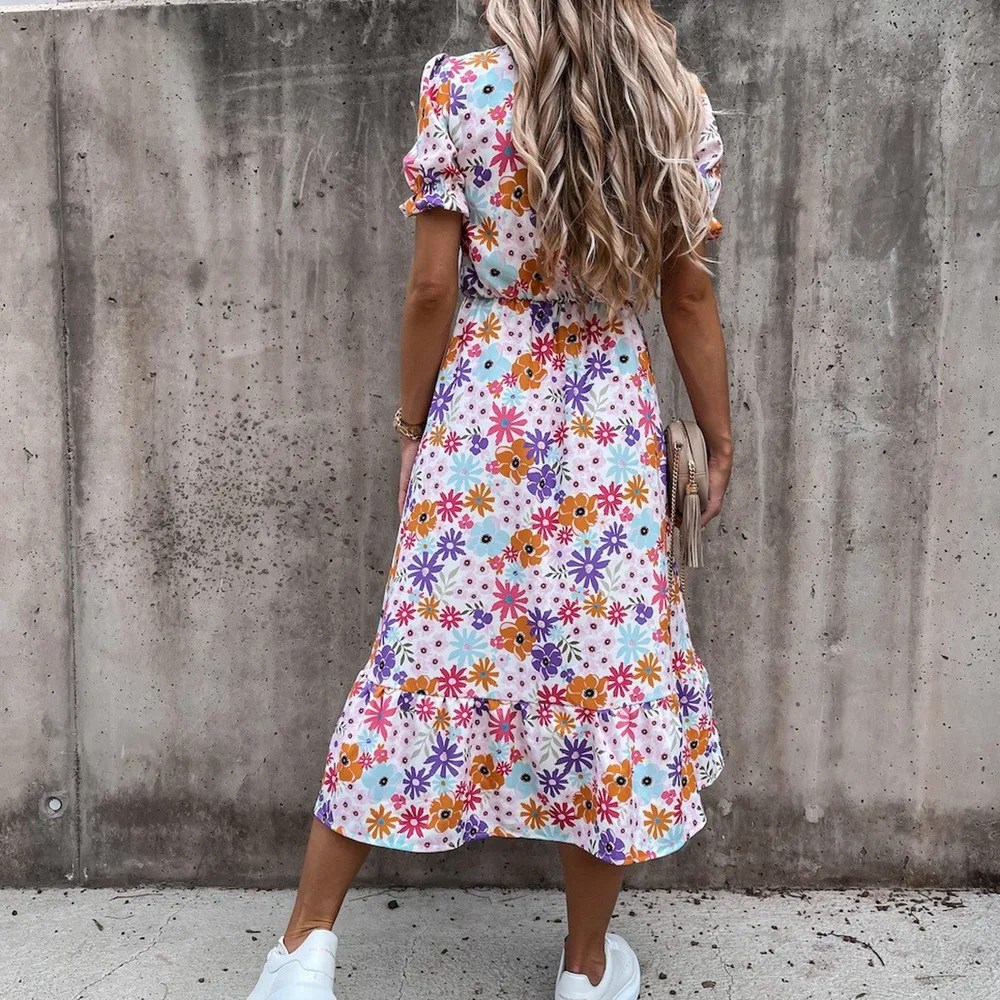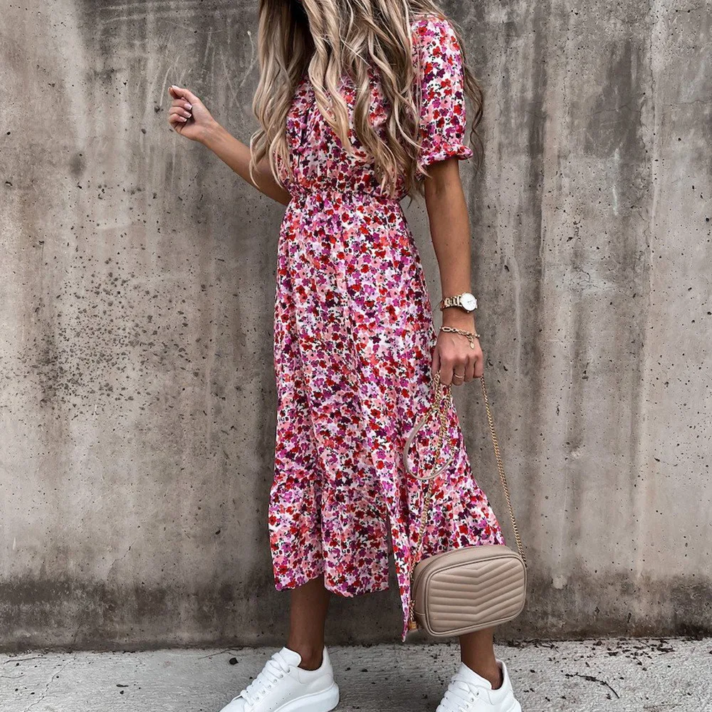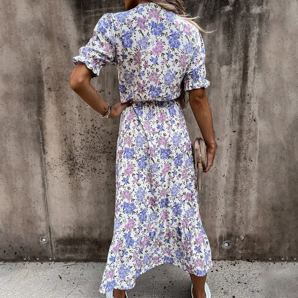 Season: Spring / Autumn Neckline: V-Neck Sleeve Style: Regular Decoration: Sashes Style: Bohemian Dresses Length: Floor-Length Material: Polyester Gender: Women