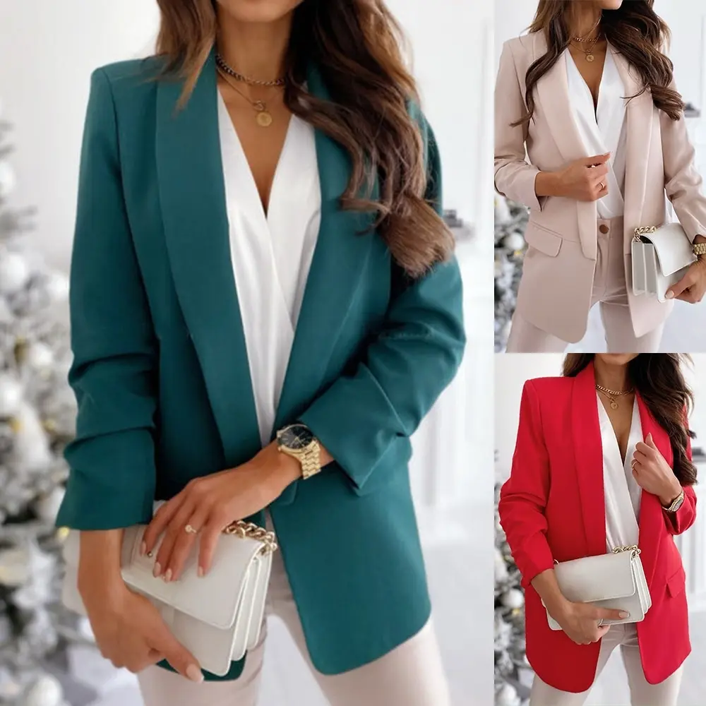 Style: CasualPattern Type: SolidClothing Length: RegularCollar: NotchedItem Type: BlazersMaterial: PolyesterGender: Women